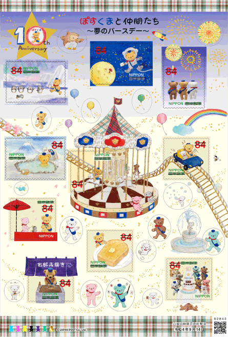 84円シートのメリーゴーランドは、ぽすくまの絵本発売記念原画展※を開催した
