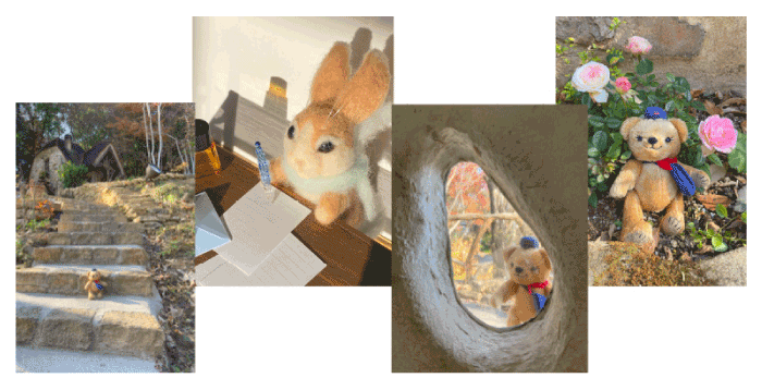 秋のしっとりした雰囲気の中で撮影すれば可愛さに加えて神秘的で魅力のある世界を表現できるのではないかと考え、今回のテーマを「旅するぽすくま」としました。