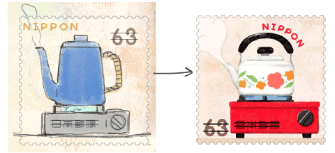 「冬のあたたかい」をテーマに、63円シートは手芸やお茶、読書など室内のモチーフを、