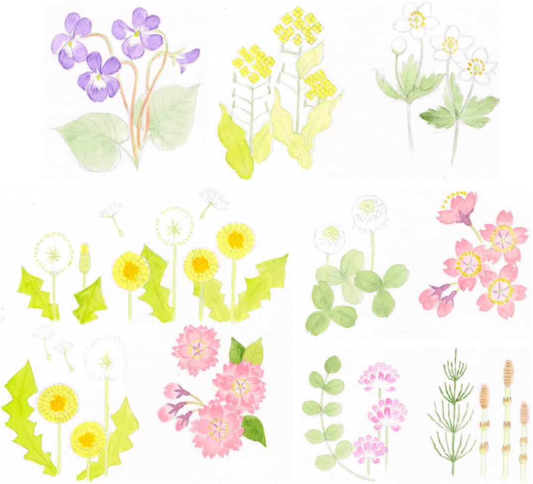 意匠、背景ともに水彩絵の具で描きましたが、淡い色合いとなったことから、見やすさを考えて採用を見送り、最終的にくっきりとしたデザインになりました。