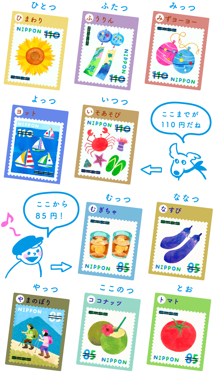 描かれているのはひまわりに風鈴、トマト…などなど夏の定番風物なんだけど、モチーフの頭文字に注目!