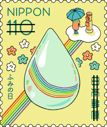 110円シートのこの切手は、「しずくと花と郵便ポスト」というタイトルです。