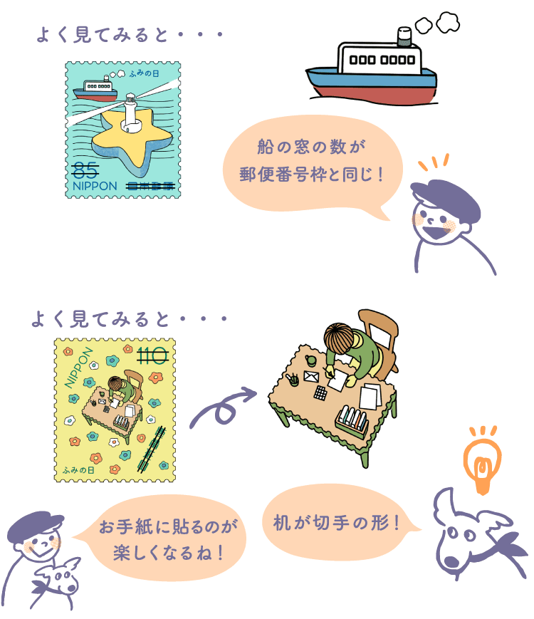 いくつかの切手にこっそり郵便要素を入れました。