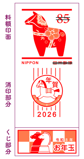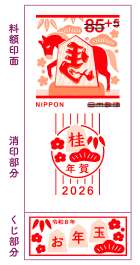 ちなみに、消印部分には「桂馬」、くじ部分には「玉将」の将棋駒も描いています。