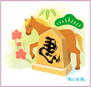 将棋駒に馬の字が逆さに書かれている左馬は「うま」を逆から読むと「まう」と読めることから、めでたい席で踊られる「舞い」を想起させ、福を招く縁起のよい駒とされています。
