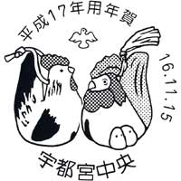 | 〒320-8799 栃木県宇都宮市中央本町4-17 宇都宮中央郵便局 郵便課 「年賀・手押し」初日印係 |