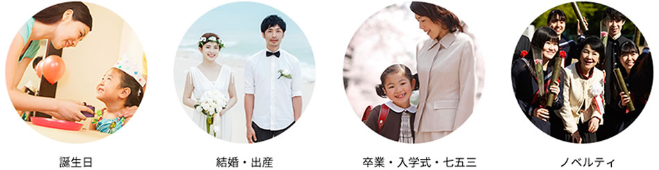誕生日、結婚・出産などの記念日から卒業・入学式などお子さまの成長の節目に。