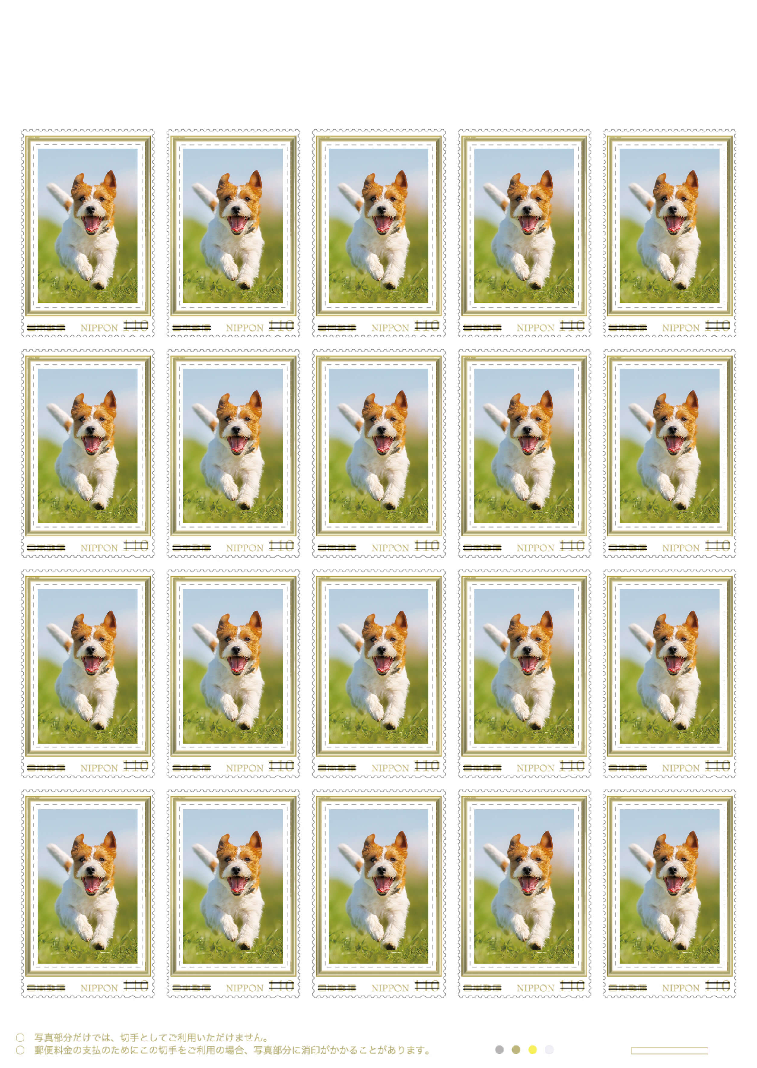 • 「20面・長方形・額縁タイプ」には切手シート上部のイラストはありません。