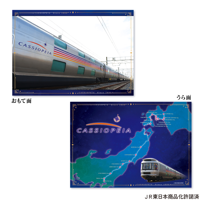 運行開始から 25 周年を迎えた寝台特急「カシオぺア」のオリジナルフレーム切手を中心とした、メモリアルなグッズ展開です。