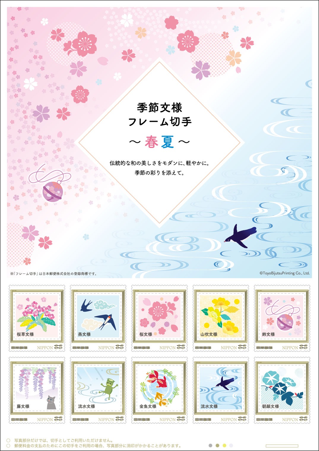 日本郵便株式会社東京支社(東京都江東区、支社長 高橋 文昭)は、オリジナル フレーム切手「季節文様~春夏~」を販売します。