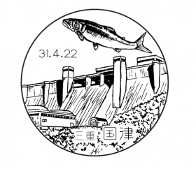 - 比奈知ダム及び長瀬太郎川に生息するひなち湖産鮎を描く。