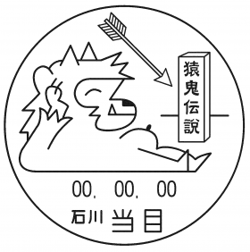 - 地元に伝わる猿鬼伝説にちなみ、「猿鬼歩こう走ろう健康大会」のロゴに弓矢を配す。