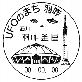 - 「宇宙科学博物館コスモアイル羽咋」の建造物と、ロケット、UFOを配す。