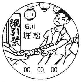 - 志賀町の無形民俗文化財である「堀松綱引き祭」を配す。