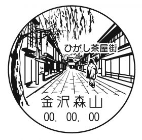 - 金沢市の代表的な観光地の「ひがし茶屋街」の風景を描く。