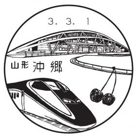 - 「JR赤湯駅」「山形新幹線つばさ」及び「サクランボ」を描く