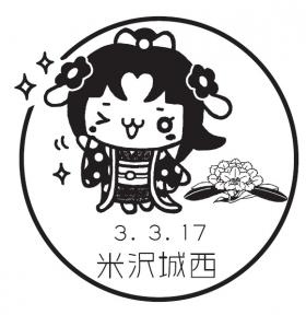 - お船の方のマスコットキャラクター「おせんちゃん」と米沢市の花「あずましゃくなげ」を描く