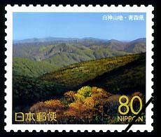「白神山地」(青森県) -日本の世界遺産- 「白神岳から望む、白神山地の秋」を描いています。 白神山地とは、青森県南西部から秋田県北西部にまたがる130,000haに及ぶ 広大な山地帯の総称です。 原生的なブナ林で占められている区域16,971haが、1993(平成5)年12月に 世界遺産として登録されました。 このうち青森県側の面積は、約4分の3を占めています。 |