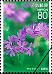 | (4)「サクラソウ」 | 山間の低湿地・草原などに生える多年草。 浅間山の麓、軽井沢町(長野県)の町花に指定されています。 花びらの先端が二つに割れており、桜の花びらに似ていることからサクラソウと呼ばれています。 |