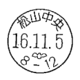 〒790-8799 松山市三番町3丁目5-2 松山中央郵便局 郵便課 初日印係 |