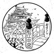 島根県:島根県の鳥「ハクチョウ」と松江城を描いています。 |
