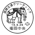 | 押印機 | 〒810-8799 福岡中央郵便局 郵便課 「国際グリ・押印機」初日印係 |