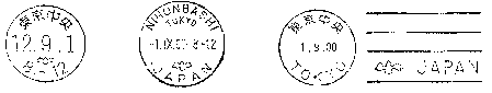 左:和文ハト印 中:欧文ハト印 右:機械ハト印