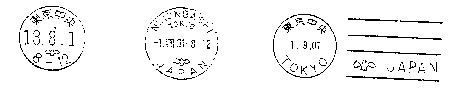 左:和文ハト印 中:欧文ハト印 右:機械ハト印