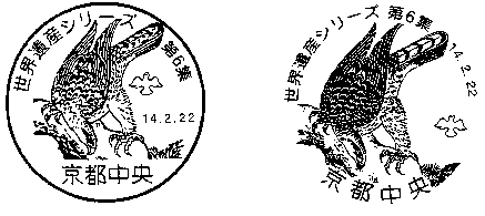 | 手押し | 〒600-8799 京都市下京区東塩小路町843-12 京都中央郵便局 郵便窓口課 「世界遺産6集・手押し」初日印係 |