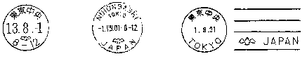 左:和文ハト印 中:欧文ハト印 右:機械ハト印