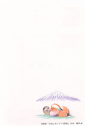 | 鳥取県 | 大山とオシドリ(県鳥) | 石山 雅章 | (グラフィックデザイナー) | 900 | 鳥取県内の郵便局等 |