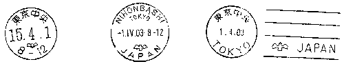 左:和文ハト印 中:欧文ハト印 右:機械ハト印