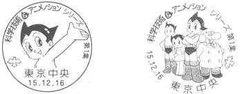 | 手押し | 〒100-8799 千代田区丸の内2丁目7-2 東京中央郵便局 切手普及課 「アニメ1集・手押し」初日印係 |