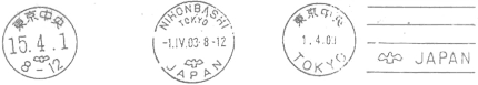 左:和文ハト印 中:欧文ハト印 右:機械ハト印