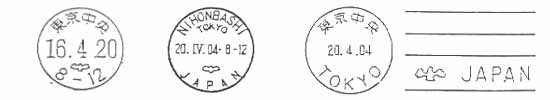 左:和文ハト印 中:欧文ハト印 右:機械ハト印