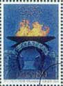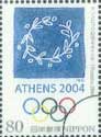 ・ 日本画家の村居正之氏によって描かれたオリンピア遺跡に「聖火」のイメージを加え、オリンピックシンボルを上部中心にデザインしました。シート余白のパルテノン神殿もまた、村居正之氏によるものです。