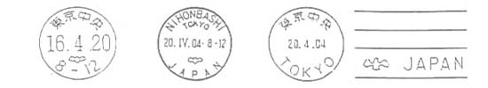 左:和文ハト印 中:欧文ハト印 右:機械ハト印