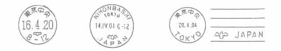 | (左:和文ハト印、中:欧文ハト印、右:機械ハト印) | ||