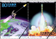 切手デザインは、世界最高水準を誇る「H-ⅡAロケット7号機」と“ひまわり”の愛称でお馴染みの衛星「ひまわり6号」です。