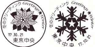 | 押印機 | 〒100-8799 東京都千代田区丸の内2-7-2 東京中央郵便局 切手普及課 「冬・押印機」初日印係 |