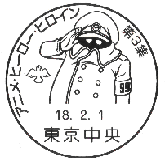 | 押印機 | 〒100-8799 千代田区丸の内2丁目7-2 東京中央郵便局 切手普及課 「アニメ3集・手押し」初日印係 |
