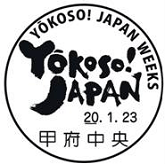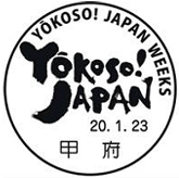 | 押印機 | 【甲府中央郵便局名によるもの】 〒100-8799 東京都千代田区丸の内2-7-2 東京中央中便局 気付 甲府中央郵便局 「YOKOSO! JAPAN・押印機(甲府中央局)」郵頼担当係 |