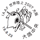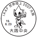 | 手押し | 〒530-8799 大阪中央郵便局 郵便課 「世界陸上・手押し」初日印係 |