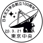 - 手押しによる押印(東京中央のもの)・・・「天文学会・手押し(東京中央局)」