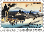 本年は、「東海道五拾三次(保永堂版)」(平木浮世絵美術館蔵)のうち、まだ題材としていない宿場の中から、90円郵便切手に「神奈川」(神奈川県)、110円郵便切手「三島」(静岡県)、130円郵便切手に「石部」(滋賀県)をデザインしています。