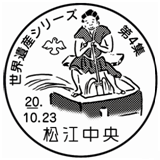| 郵便局株式会社 | 手押し | 【松江中央郵便局名によるもの】 〒100-8994 東京都中央区八重洲1-5-3 東京中央郵便局 気付 松江中央郵便局 「世界遺産・手押し(松江中央局)」郵頼担当係 |