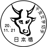 | 押印機 | 【日本橋支店名によるもの】 〒100-8799 東京都中央区銀座8-20-26 郵便事業株式会社 銀座支店 気付 日本橋支店 「干支文字・押印機(日本橋支店)」郵頼担当係 |