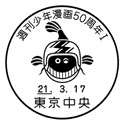 「週刊少年漫画50周年記念」の記念押印等