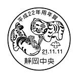 | 郵便局株式会社 | 手押し | 【静岡中央郵便局名によるもの】 〒100-8994 東京都中央区八重洲1-5-3 東京中央郵便局 気付 静岡中央郵便局 「年賀・手押し(静岡中央局)」郵頼担当係 |