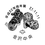 - 押印機による押印(金沢中央局のもの)・・・「年賀記念・押印機(金沢中央)」